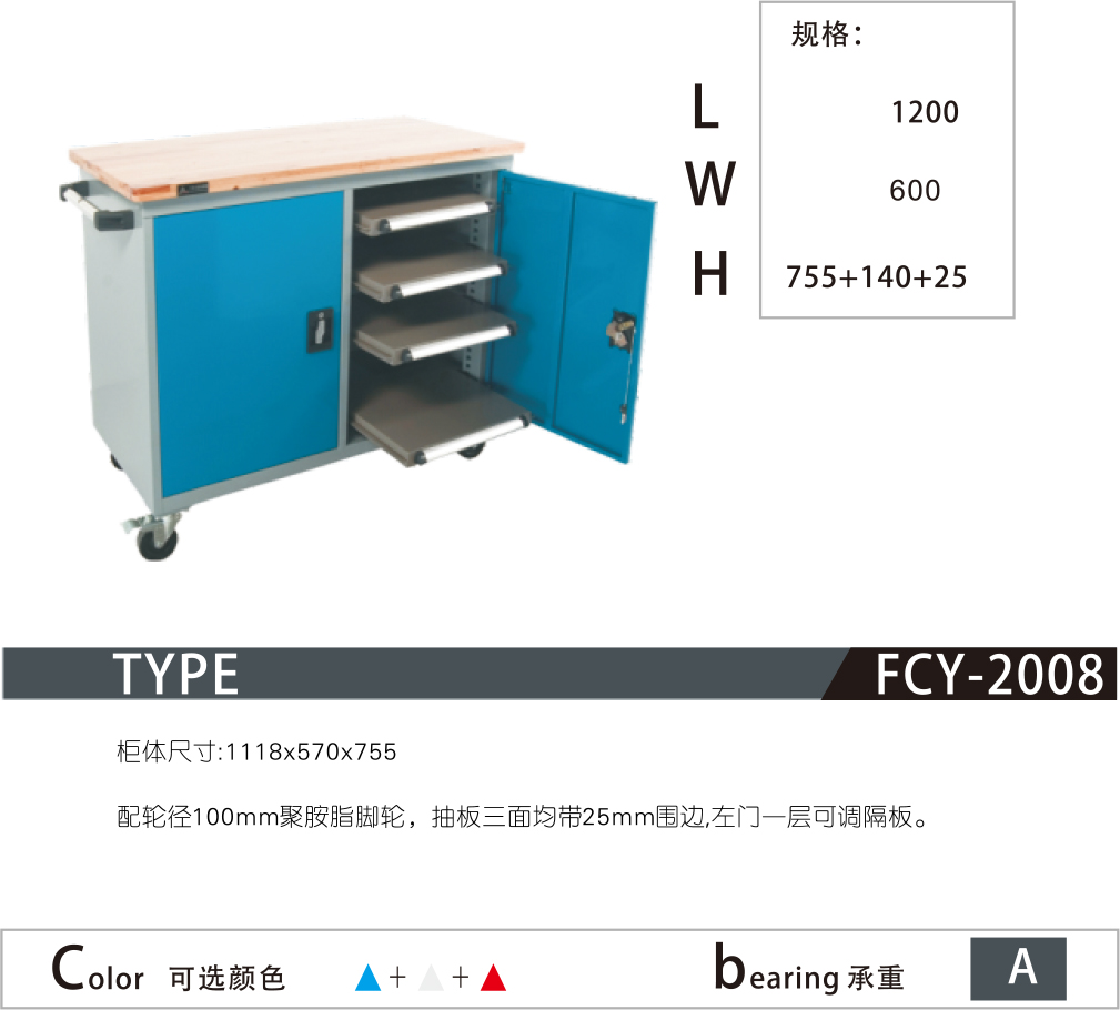 7.柜体顶部可选配:绿色条纹胶皮、围边、图板、活动背抽、方孔挂板或百叶挂板,增加工具柜的使用功能